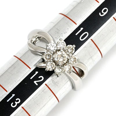リング 指輪 ダイヤ 0.56ct プラチナシルバー Pt900 9P 9石 9粒 ブリリアントカット フラワー 花モチーフ ウェーブ 11号 【中古】