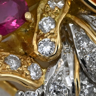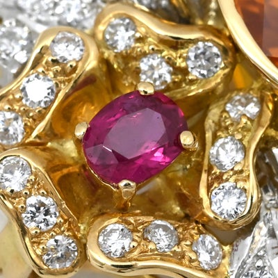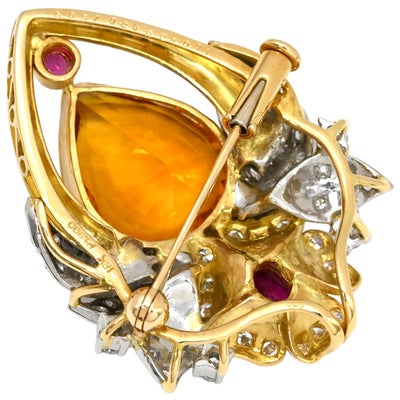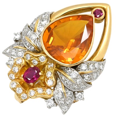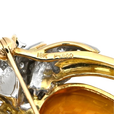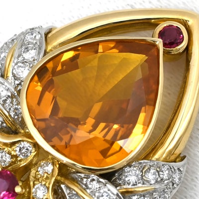 ブローチ ゴールデンサファイア ブローチ オレンジ×イエローゴールド×プラチナシルバー Au750 YG Pt900 ダイヤ 色石 ゴールデンドロップ 【中古】