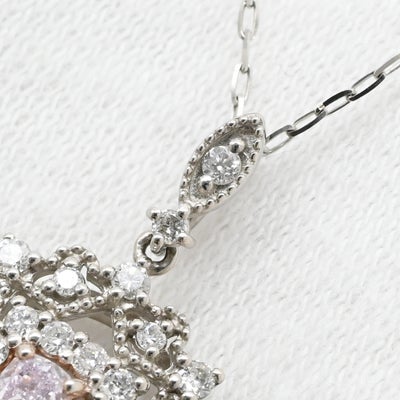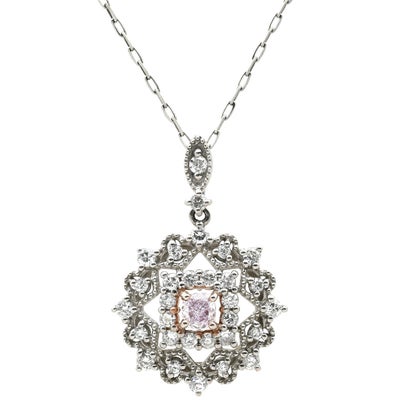 【SALE】 ネックレス ピンクダイヤ ペンダント ピンク×プラチナシルバー ダイヤモンド ダイア 【中古】