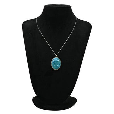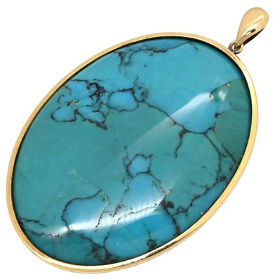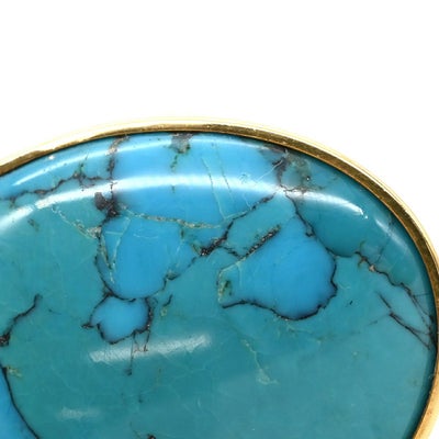 ペンダントトップ ターコイズ トルコ石 イエローゴールド 青 オーバル型 カボションカット 【中古】
