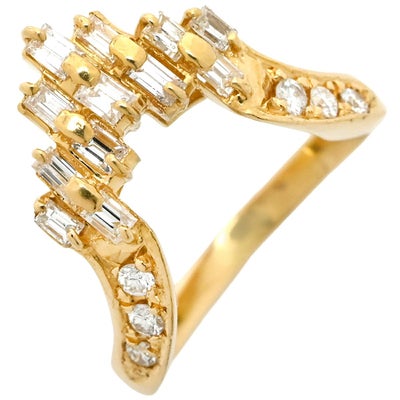 リング 指輪 ダイヤ リング イエローゴールド×シルバー Au750 18K 18金 YG V字デザイン バゲットカット 7号 【中古】