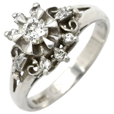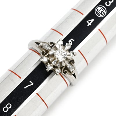 リング 指輪 ダイヤ 0.15ct 0.17ct プラチナシルバー Pt900 9P 9石 9粒 フラワー 花モチーフ 5.5号 【中古】