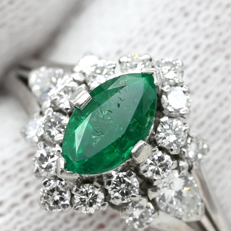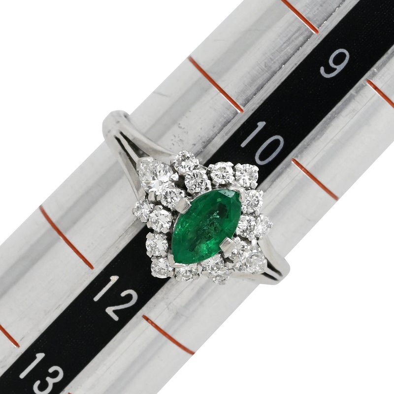 リング 指輪 エメラルド ダイヤ リング プラチナシルバー グリーン 緑 マーキスカット PM900 11号 【中古】