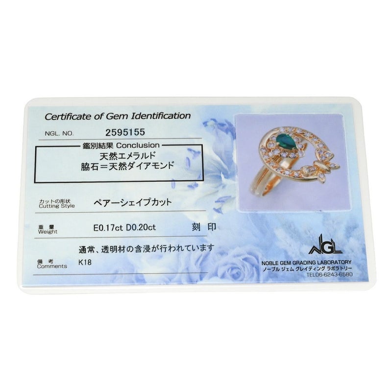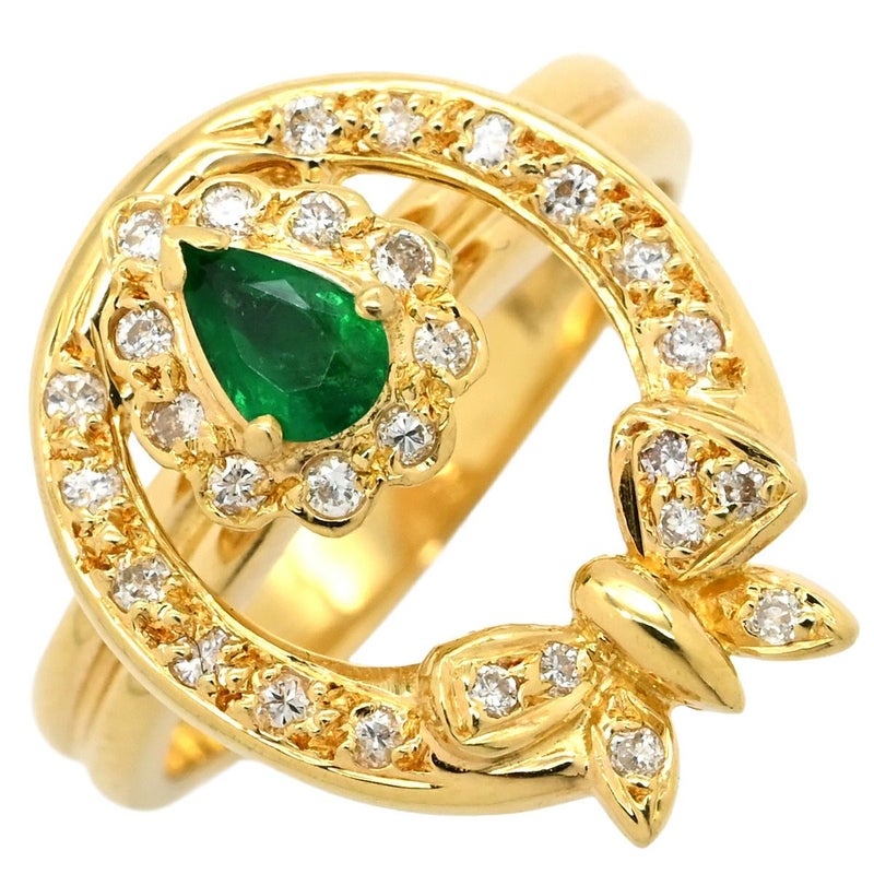 リング 指輪 ゴールドリング イエローゴールド Au750 18金 ダイヤモンド エメラルド スピナーリング リボンモチーフ 蝶 11号 【中古】