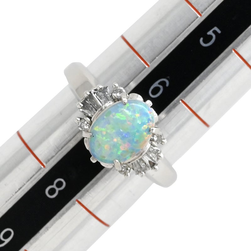 リング 指輪 オパール ダイヤリング プラチナシルバー 白 ホワイト オーバル 7号 【中古】