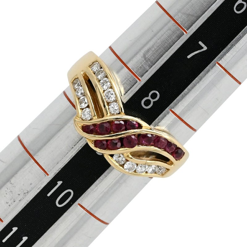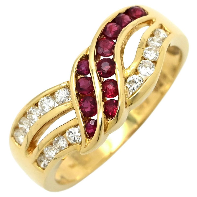 リング 指輪 ルビー ダイヤ リング イエローゴールド Au750 18K 18金 レッド 赤 8.5号 【中古】