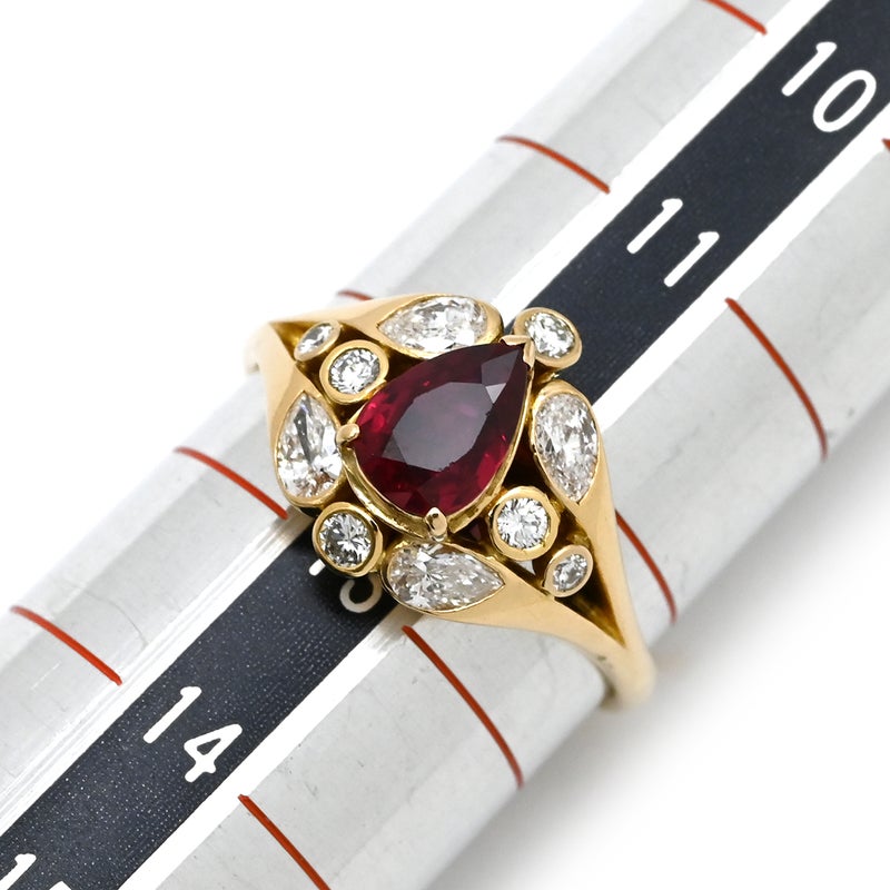 リング 指輪 ルビー ダイヤ リング イエローゴールド Au750 18K 18金 レッド 赤 12号 【中古】