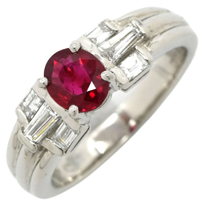 リング 指輪 ルビー ダイヤリング プラチナシルバー レッド 赤 12.5号 【中古】
