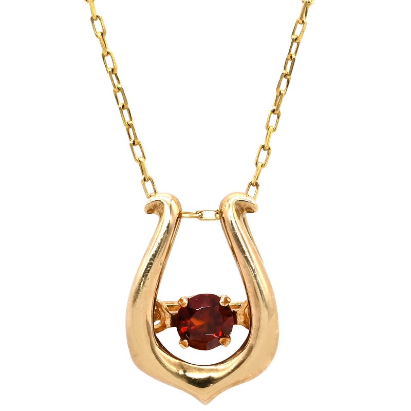 ネックレス ガーネット U字ペンダント イエローゴールド 10K ホースシュー 馬蹄 ネックジュエリー 【中古】