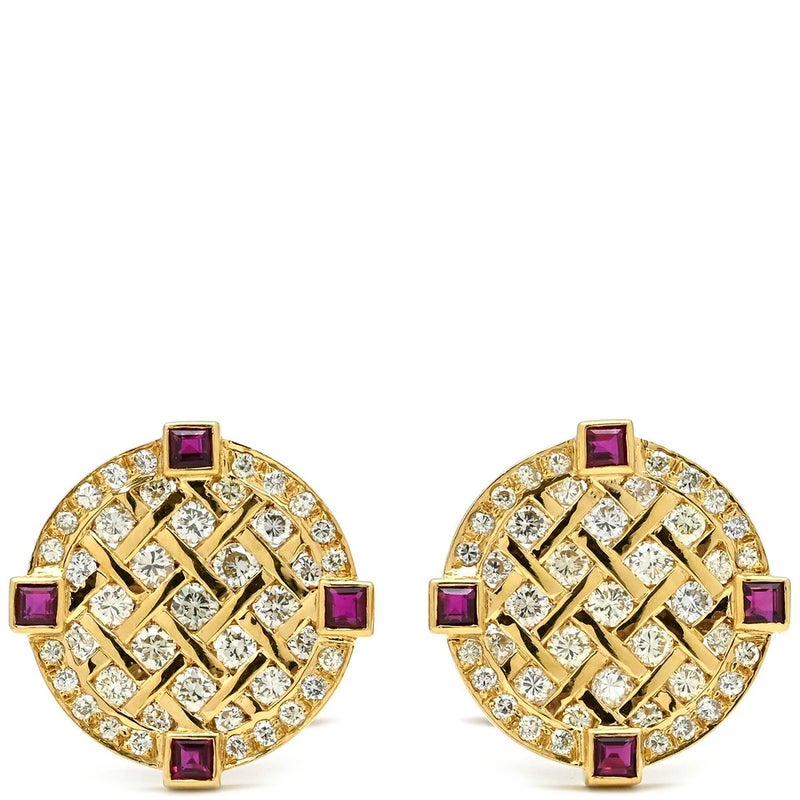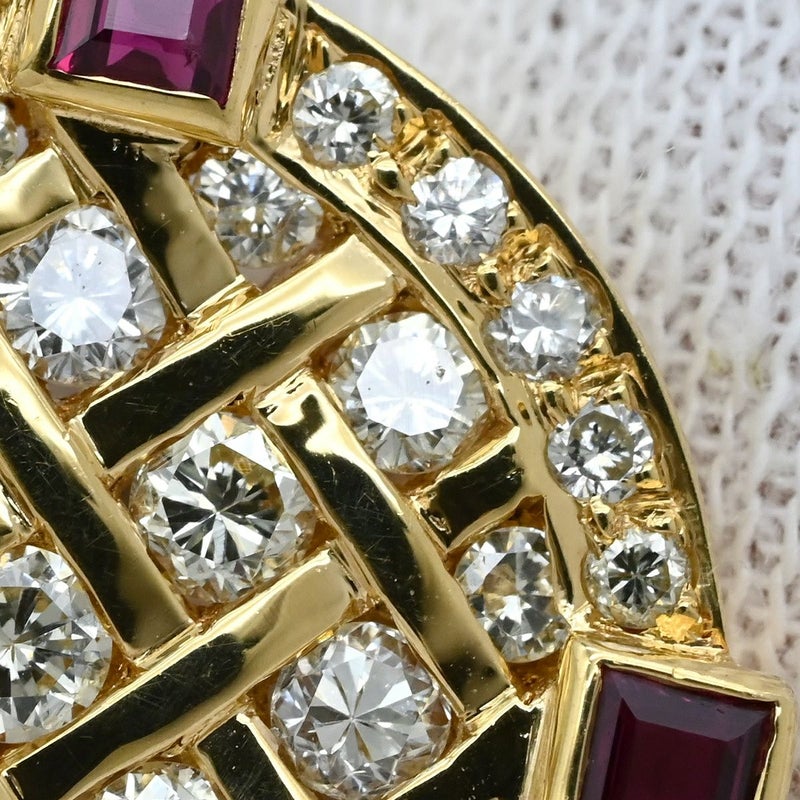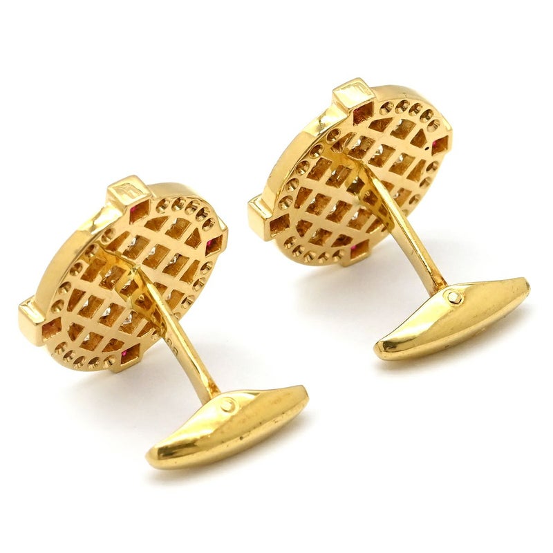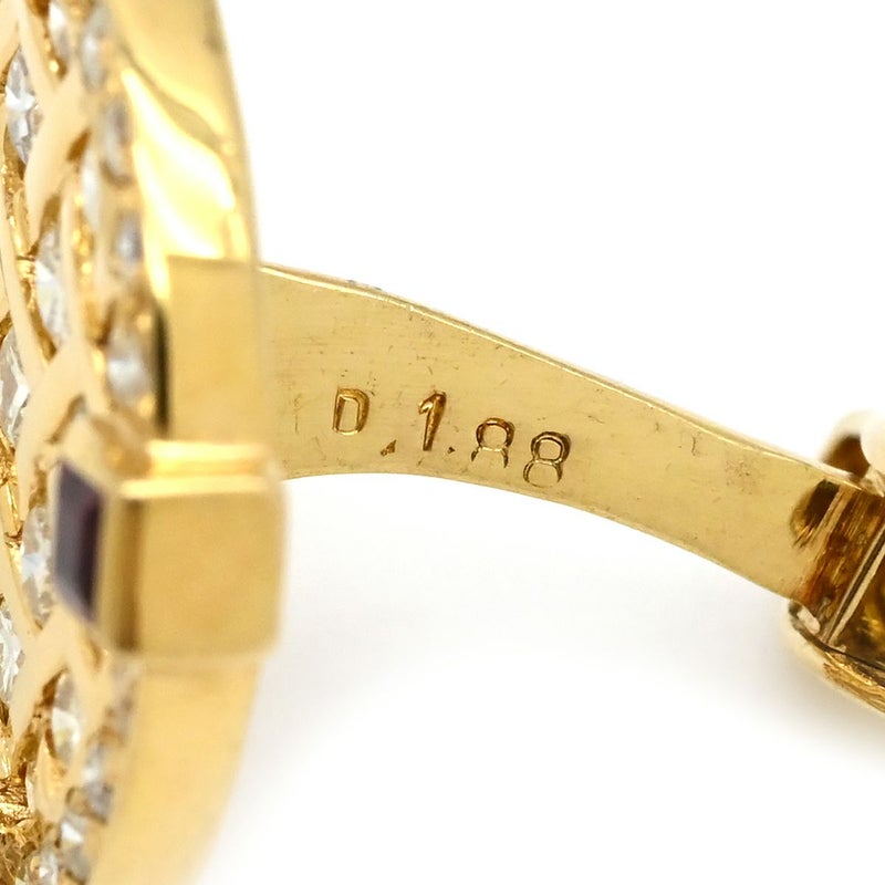 カフス カフリンクス ダイヤ×ルビー イエローゴールド×シルバー Au750 18K 18金 ラウンド 【中古】