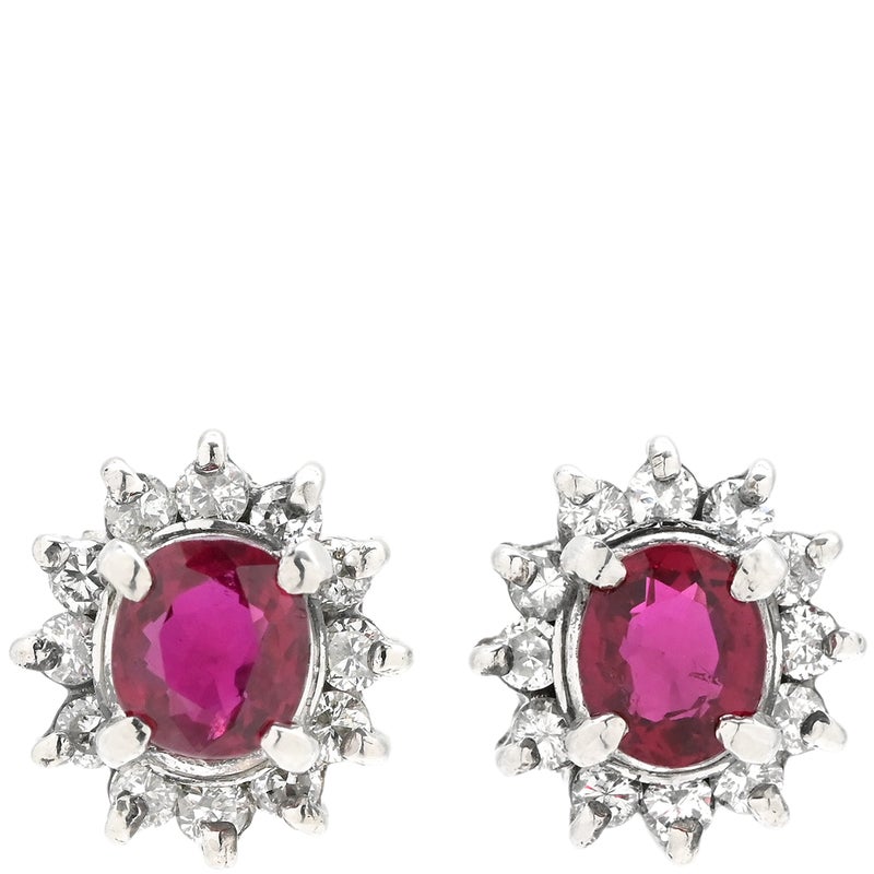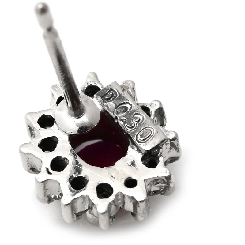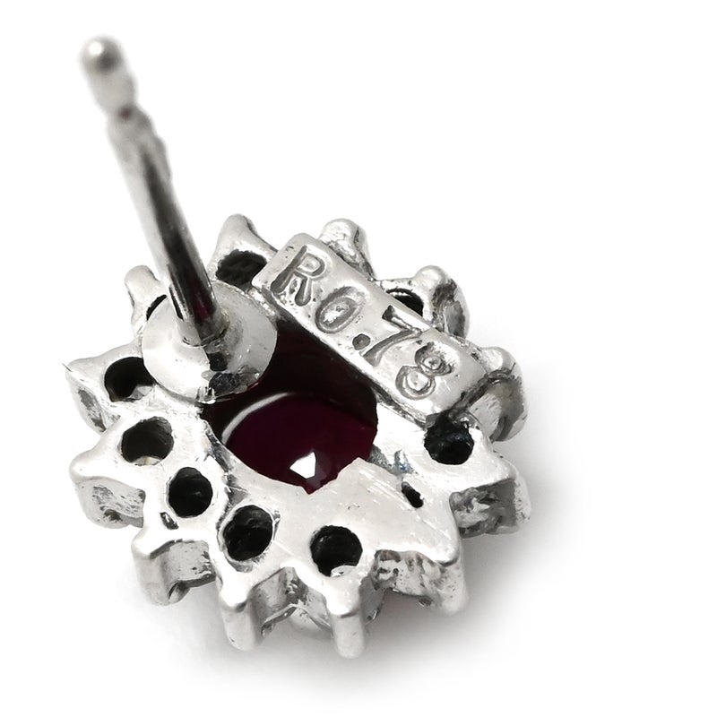 ピアス ルビー ダイヤ プラチナシルバー×レッド 赤 Pt900 オーバル フラワーモチーフ 花 0.30ct 両耳 【中古】