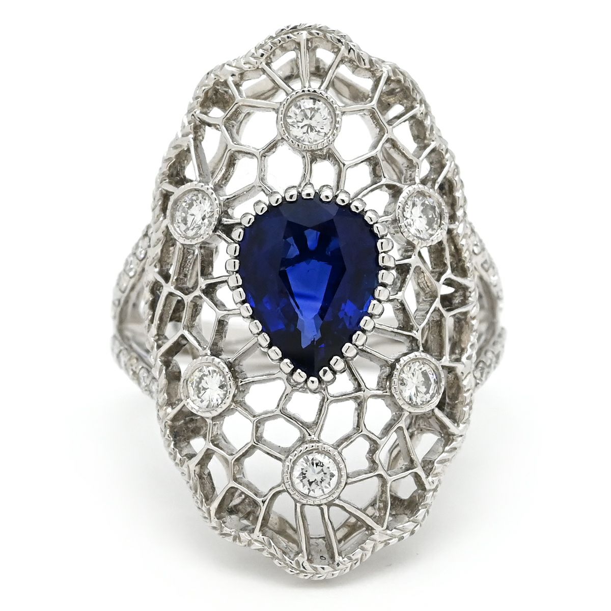 他の画像を見る リング 指輪 ブルーサファイア ダイヤ ブルー×プラチナシルバー 1.47ct オーバルカット Pt900 プラチナム 青 メレ フラワーモチーフ 10号 【中古】 NON BRANDリング 指輪 当店価格: ¥ 150,920 税込 中古 カートに入れる