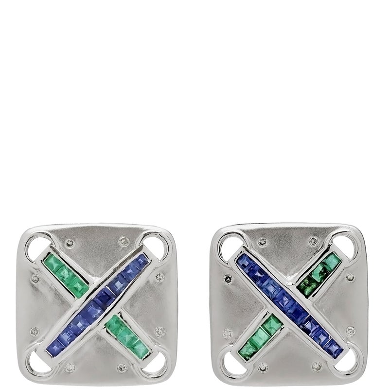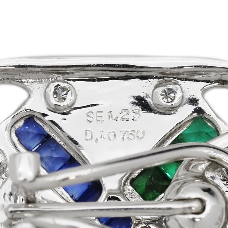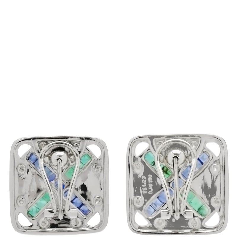 ピアス サファイア エメラルド ダイヤピアス ホワイトゴールド 750 マルチストーン スクエア 四角 クロス ブルー グリーン 【中古】