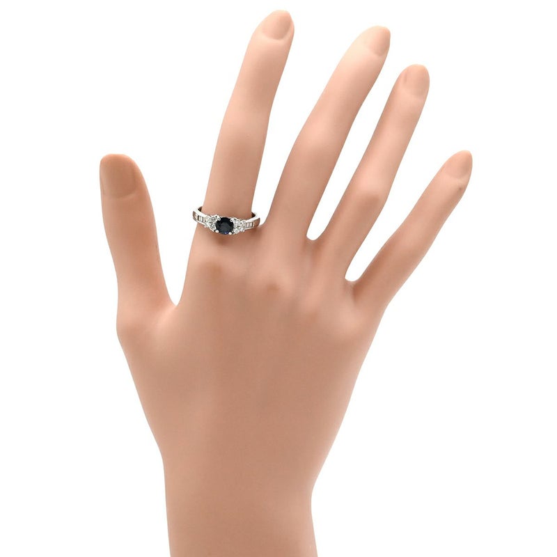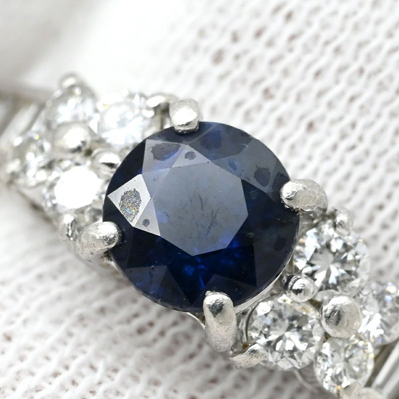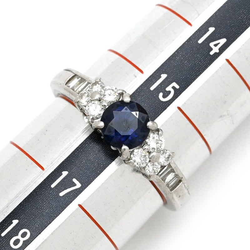 リング 指輪 ブルーサファイア ダイヤリング プラチナシルバー 青 16号 【中古】