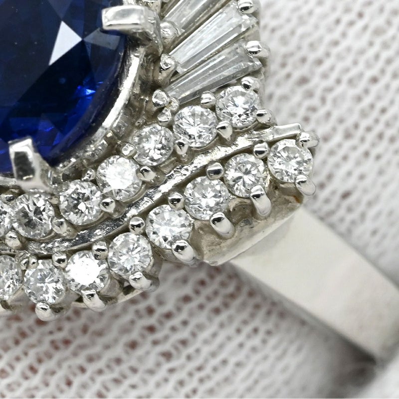 リング 指輪 ブルーサファイア ダイヤリング プラチナシルバー ロイヤルブルー 青 ヘイローリング 13号 【中古】