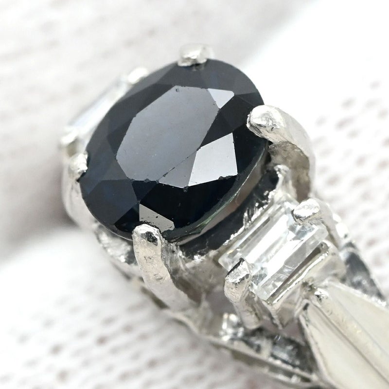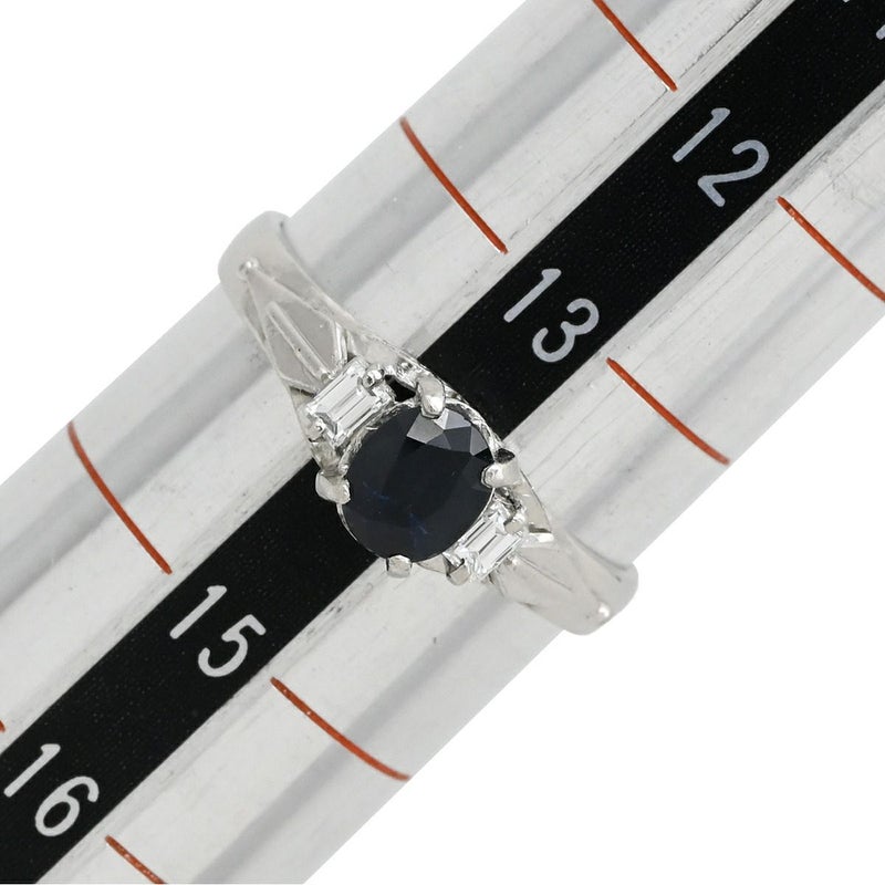 リング 指輪 ブルーサファイア ダイヤリング プラチナシルバー 青 立爪 14号 【中古】