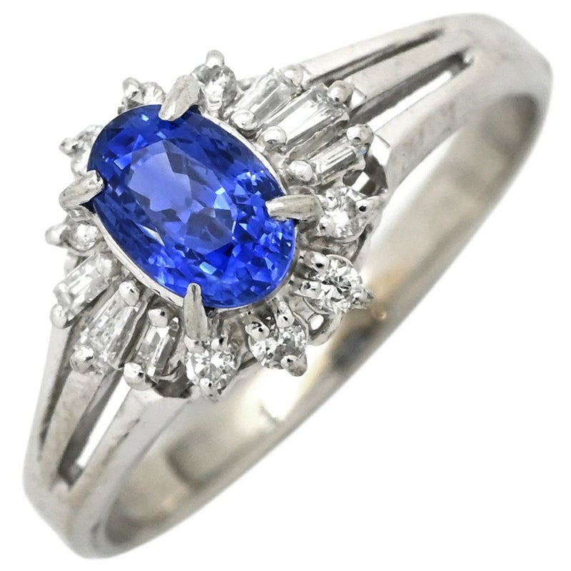リング 指輪 ブルーサファイア ダイヤ リング ブルー×プラチナシルバー 青 プラチナム オーバル 10号 【中古】