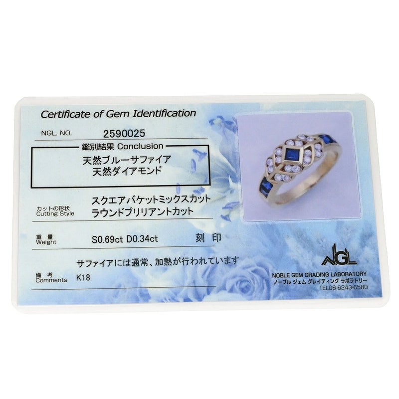 リング 指輪 ブルーサファイア ダイヤ イエローゴールド×ブルー Au750 18K 18金 ダイヤ ジュエリー ブルー 13号 【中古】