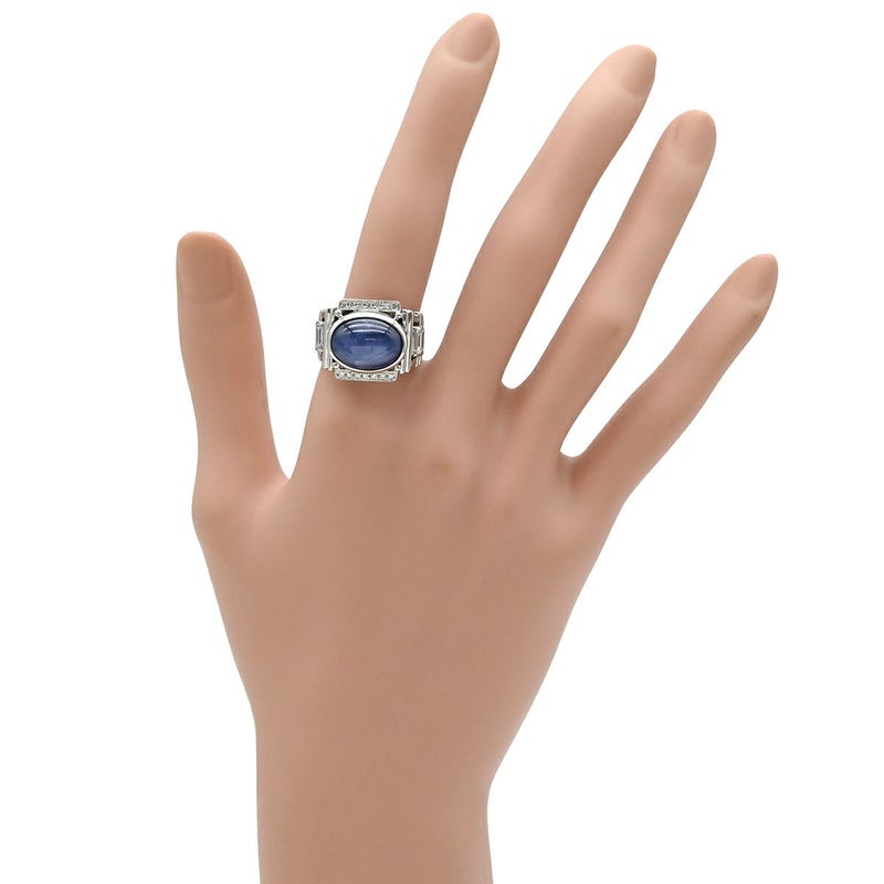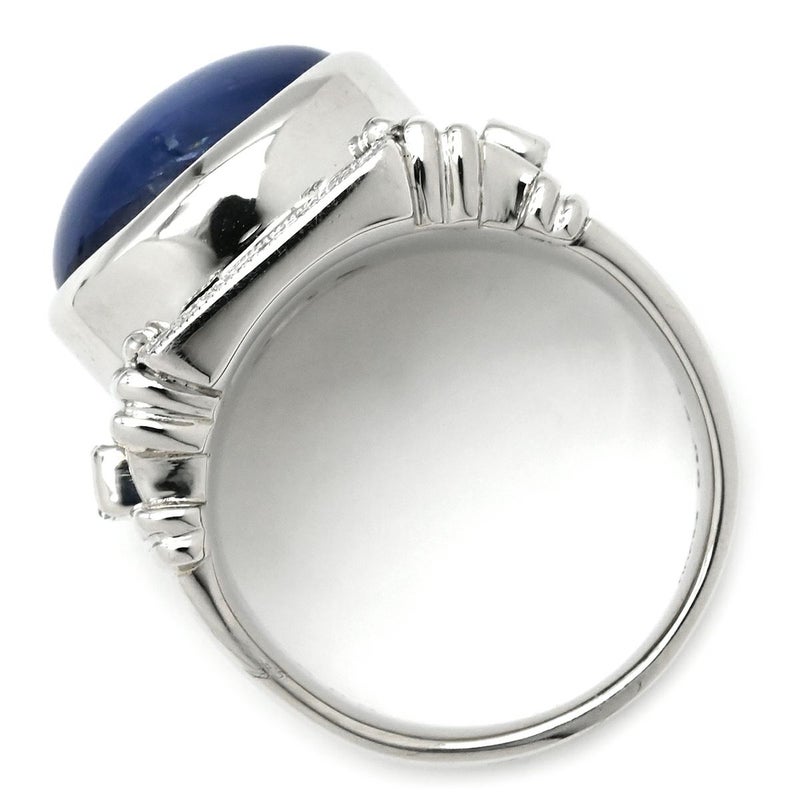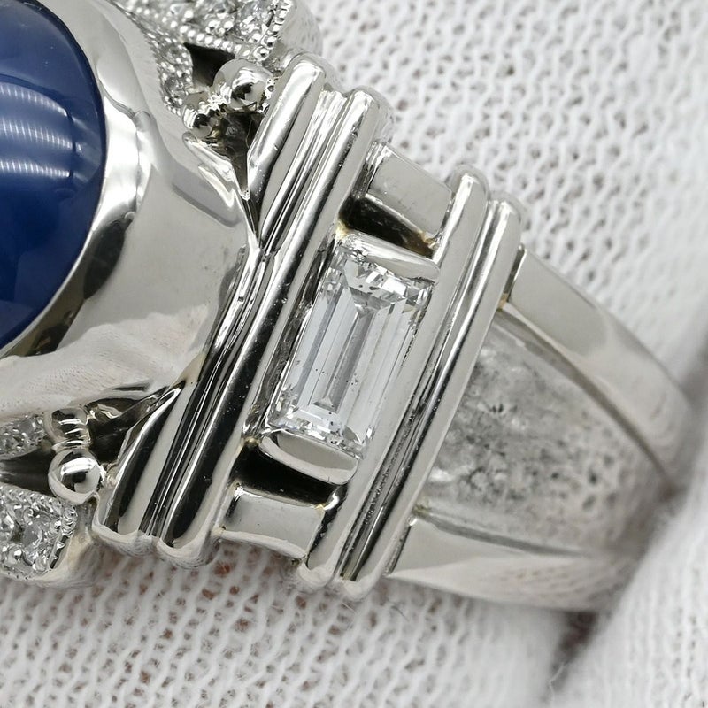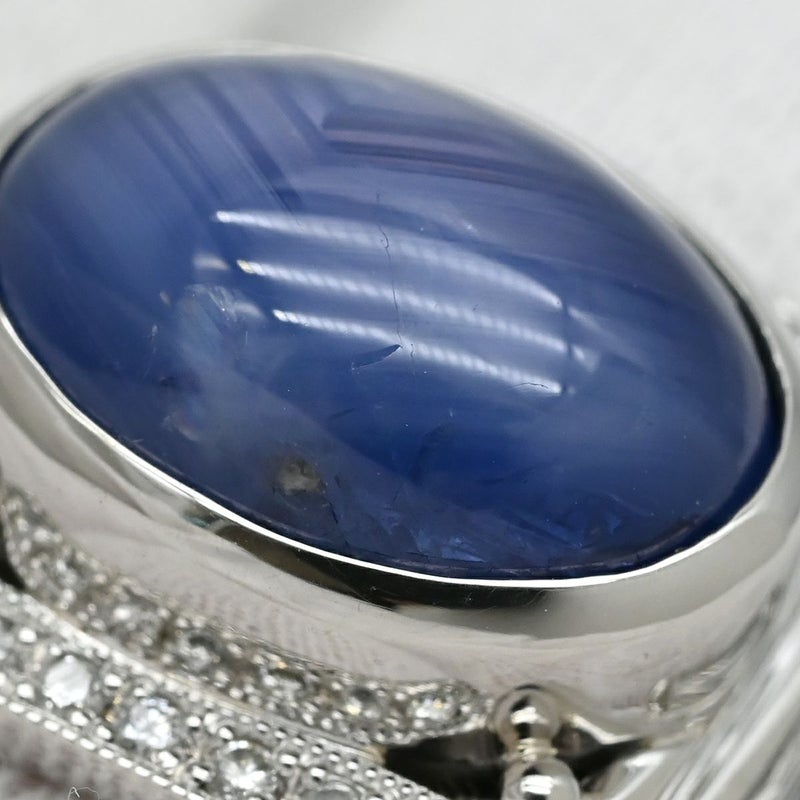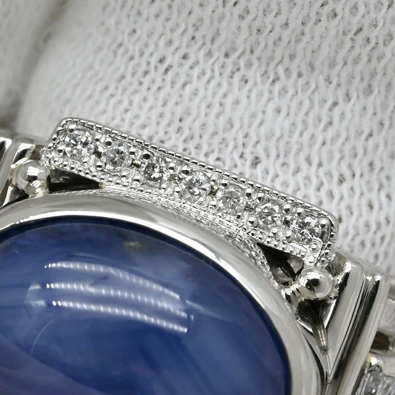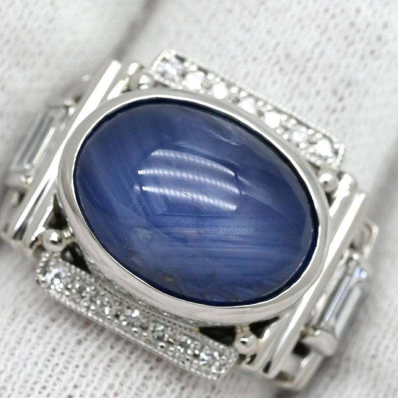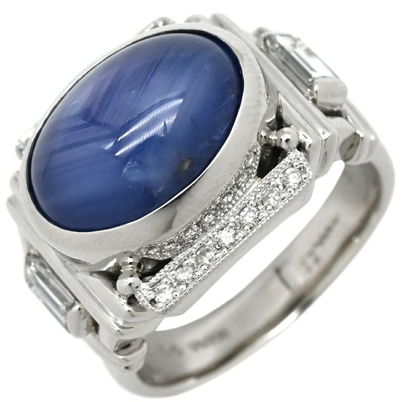 リング 指輪 スターサファイア ダイヤリング プラチナシルバー 青 カボションカット 14号 【中古】