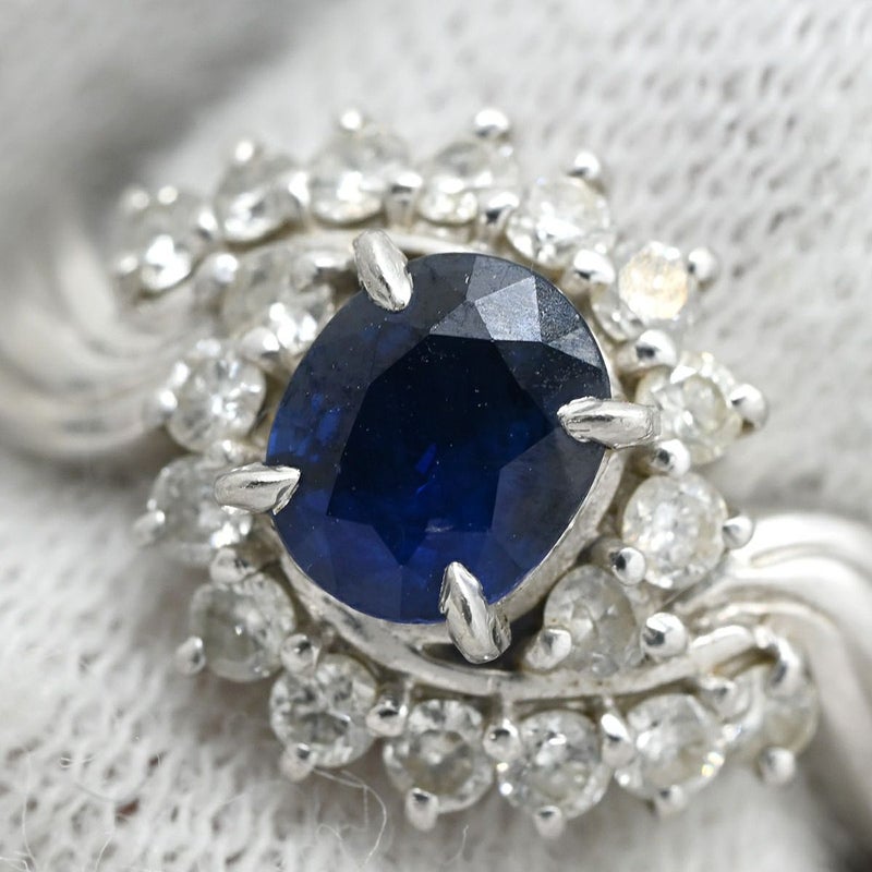 リング 指輪 ブルーサファイア 0.56ct ダイヤリング プラチナシルバー 青 Pt900 オーバルミックスカット 1石 10号 【中古】