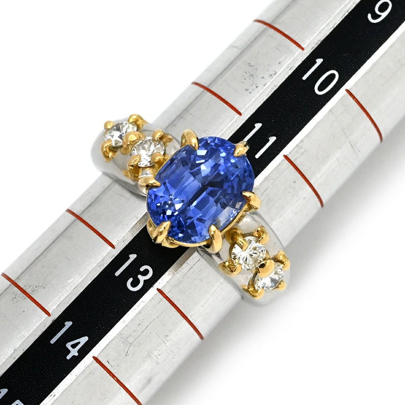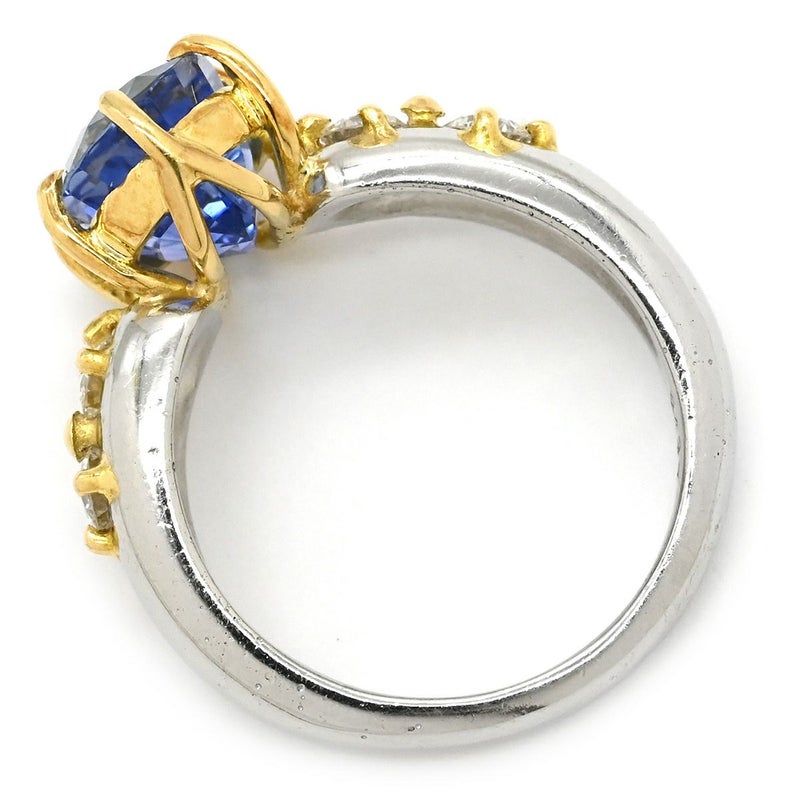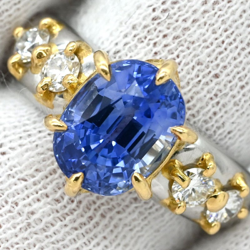 リング 指輪 サファイア ダイヤ リング イエローゴールド×プラチナシルバー Au750 18K Pt900 ブルー コンビ 4.32ct 12号 【中古】
