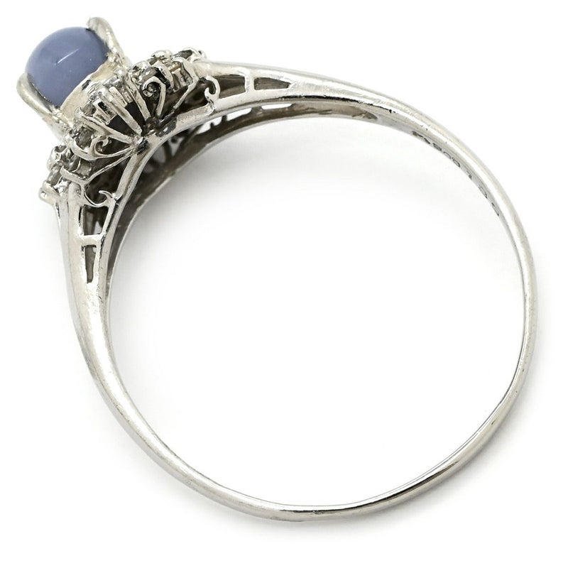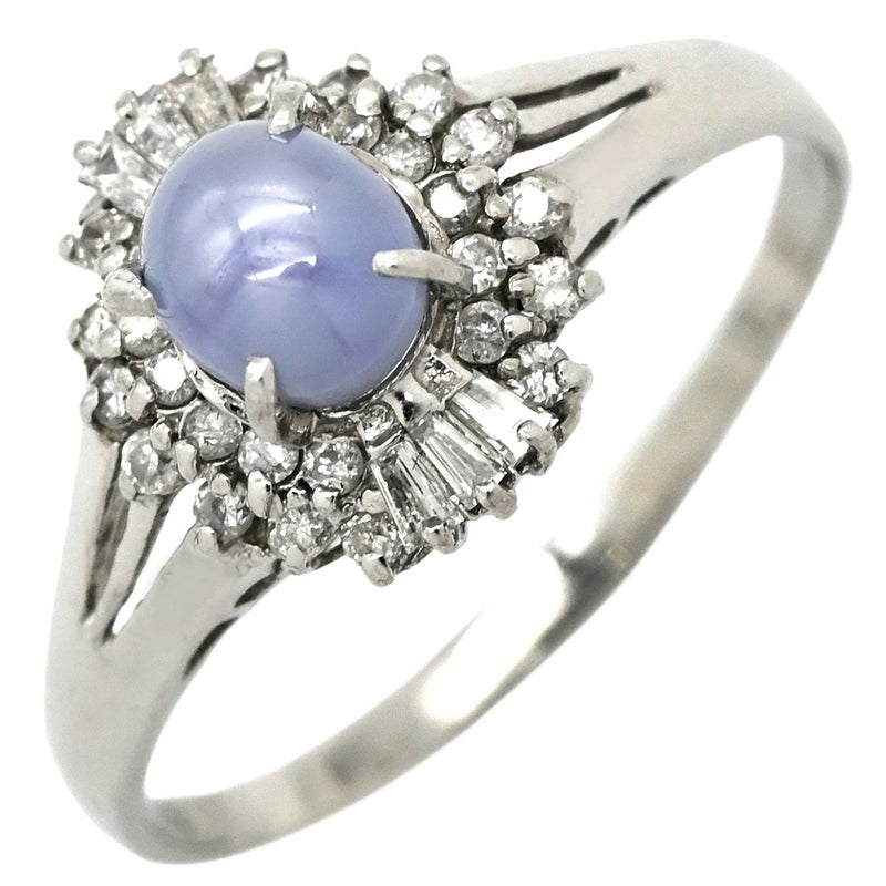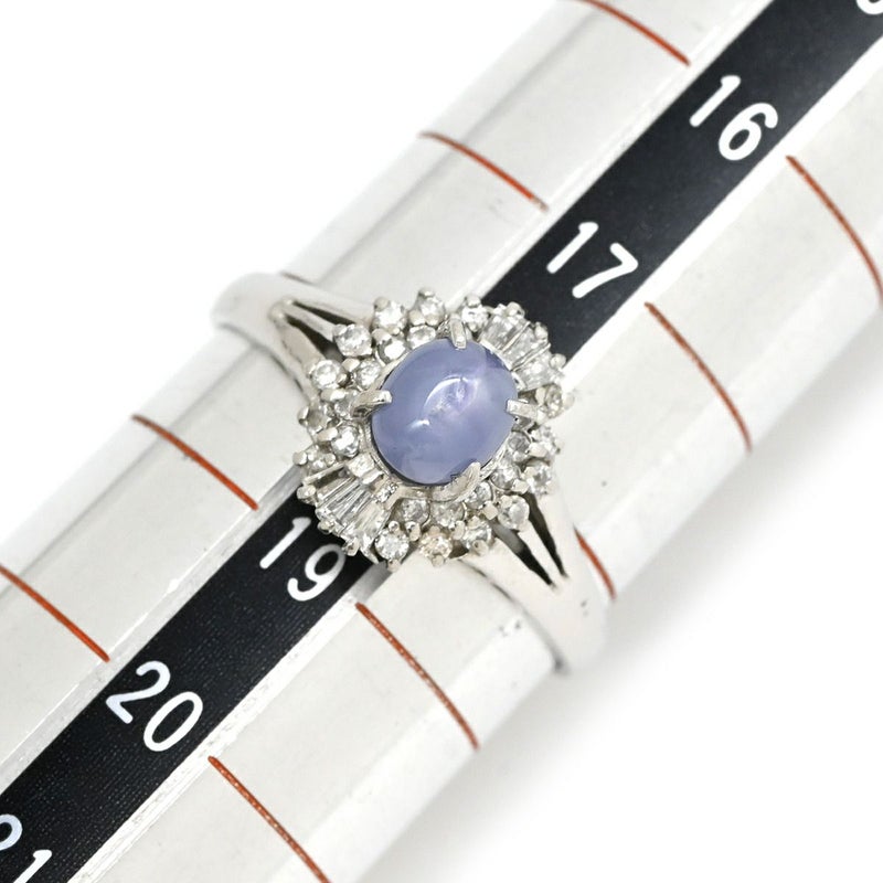 リング 指輪 スターサファイア 1.39ct ダイヤモンド プラチナシルバー 青 ブルー プラチナ900 オーバルカボションカット 1石 18号 【中古】