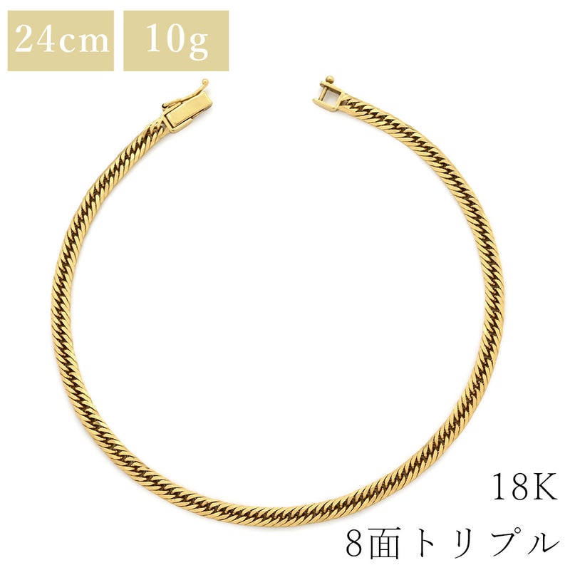 喜平 KIHEI ブレスレット アンクレット K18 24cm 10.3g 8面トリプル K18YG イエローゴールド 造幣局検定マーク ※ショッピングローン対応していません 【中古】