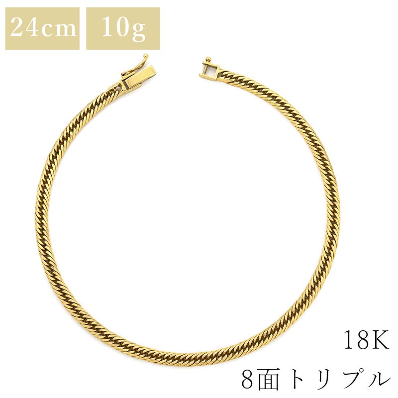 喜平 KIHEI ブレスレット アンクレット K18 24.6cm 10.1g 8面トリプル K18YG イエローゴールド 造幣局検定マーク※ショッピングローン対応していません 【中古】