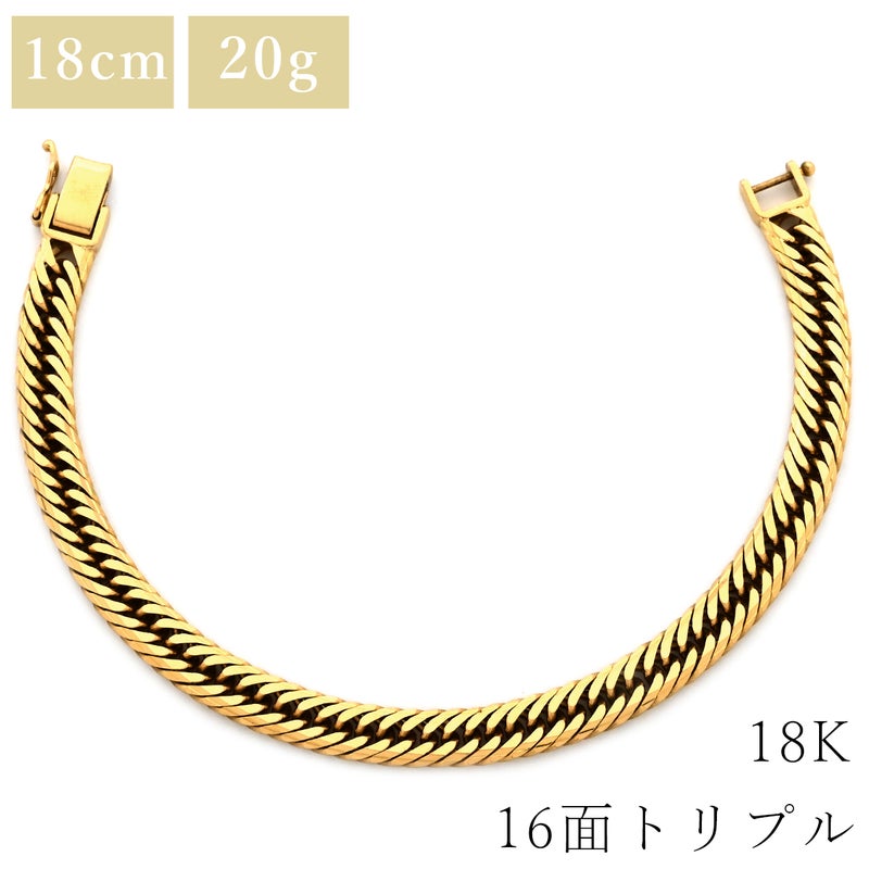 喜平 KIHEI ブレスレット K18 18金 18.2cm 20.6g 16面トリプル K18YG イエローゴールド 造幣局検定マーク ※ショッピングローン対応していません 【中古】