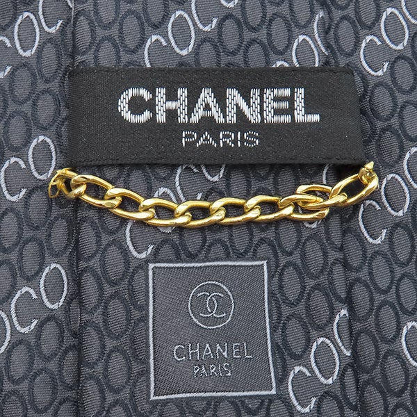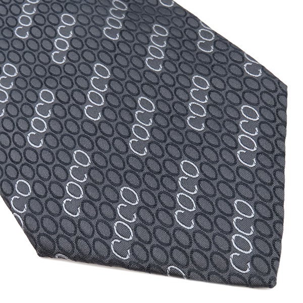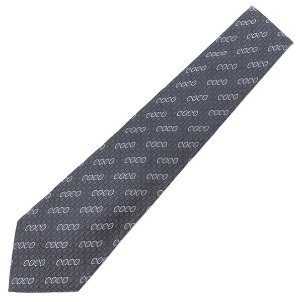 シャネル CHANEL ネクタイ COCO柄 9.5cm シルク グレー×ネイビー 総柄 【中古】