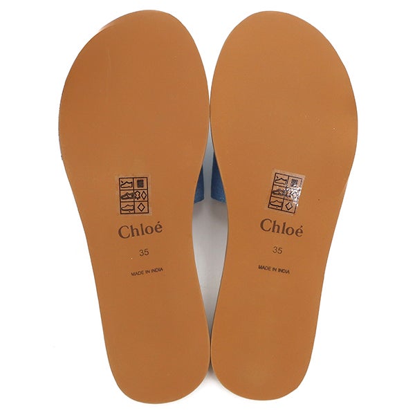 クロエ Chloe サンダル ウッディ ラバー テキスタイル エチレンビニルアセテート デニムブルー #35 ロゴ フラットサンダル C20185Z10 【箱】 【中古】