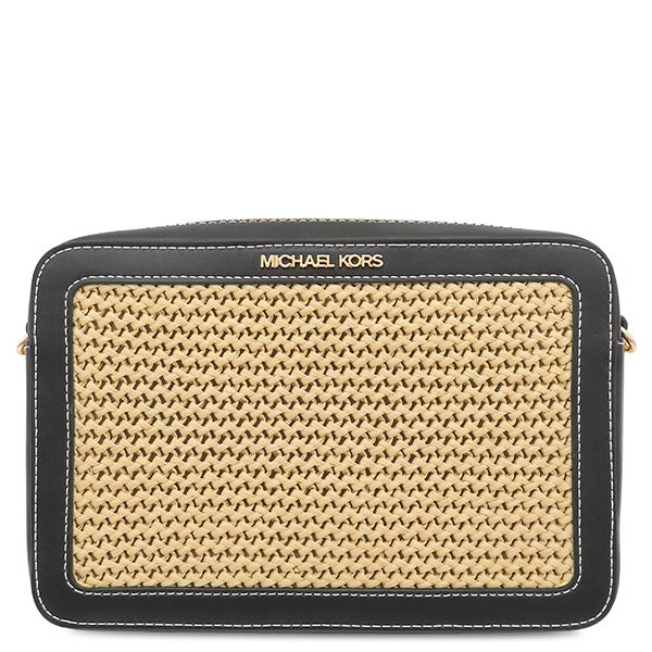 マイケルコース Michael Kors ショルダーバッグ ジェットセット クロスボディ ラージ レザー ポリプロピレン ブラック×ナチュラル ゴールド金具 黒 かごバッグ 35S4GTTC3W 【保存袋】 【中古】