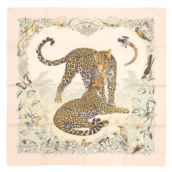エルメス HERMES スカーフ カレ90 CARRE シルク ピンク×マルチカラー 【JUNGLE LOVE /ジャングルラブ】 【中古】