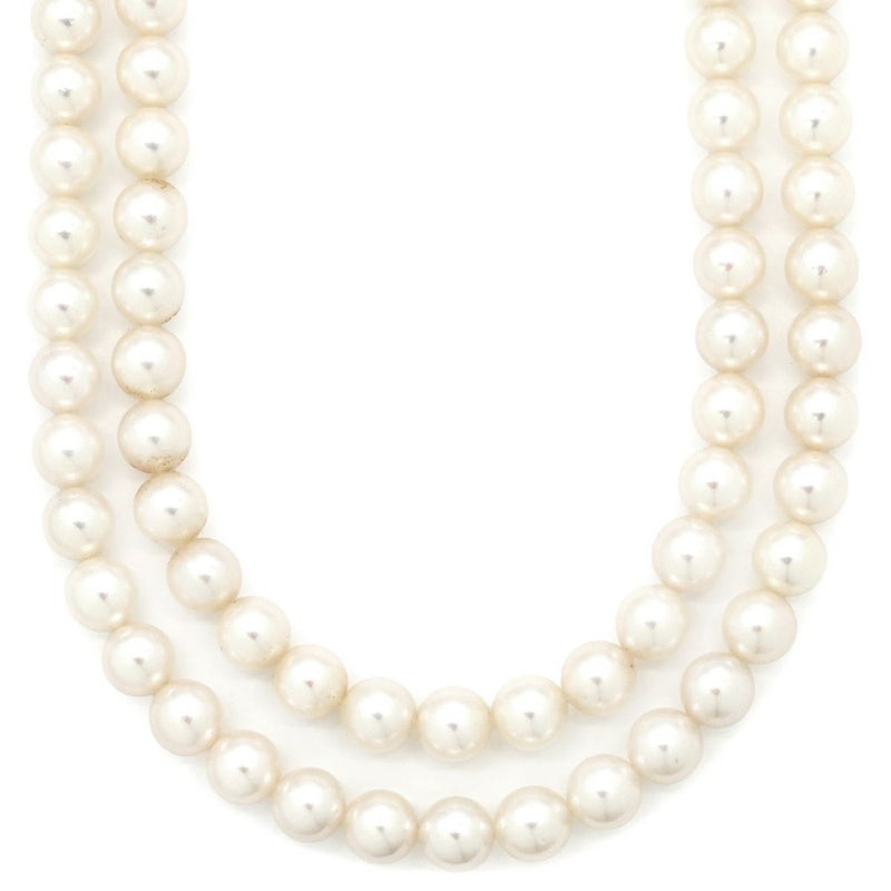 ネックレス あこやパール 8.5mm 4Pルビー 2連 パールホワイトXゴールド 真珠 アコヤパール 白 ピンク ラウンドシェイプ 【中古】