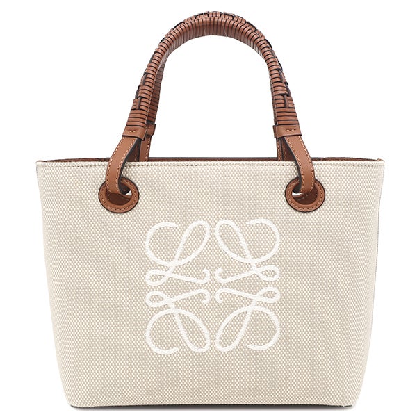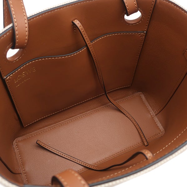 ロエベ LOEWE 2WAYバッグ アナグラム トート ミニ キャンバス レザー エクリュ×タン ゴールド金具 茶 ハンドバッグ ショルダー A717S74X01 【保存袋】 【中古】
