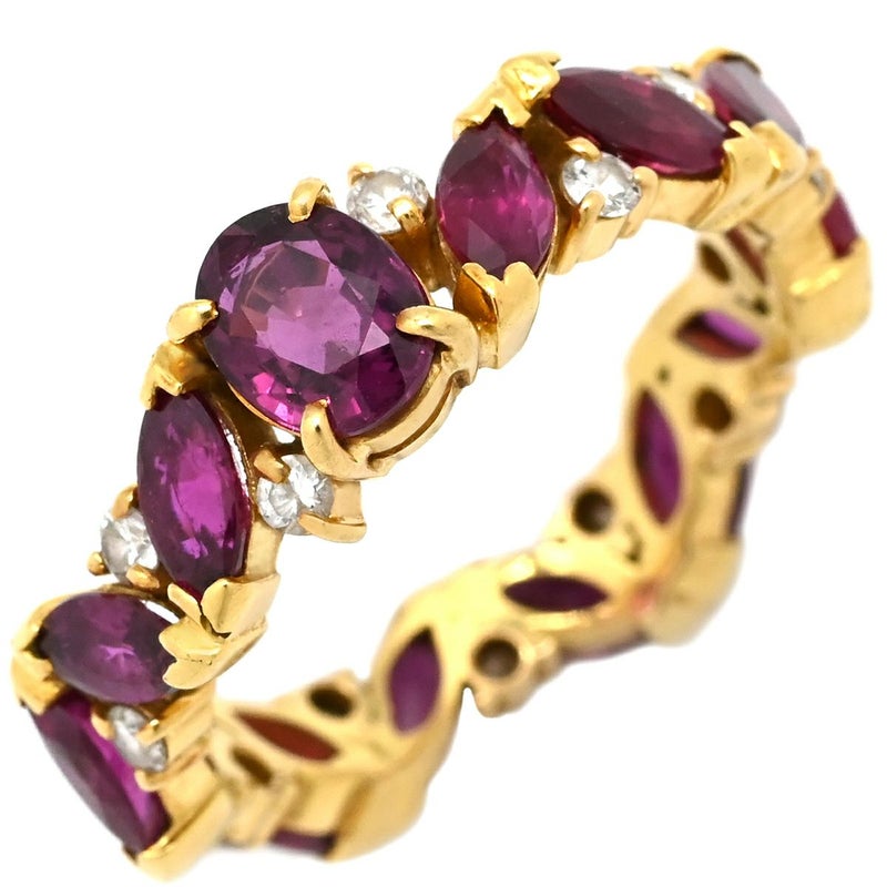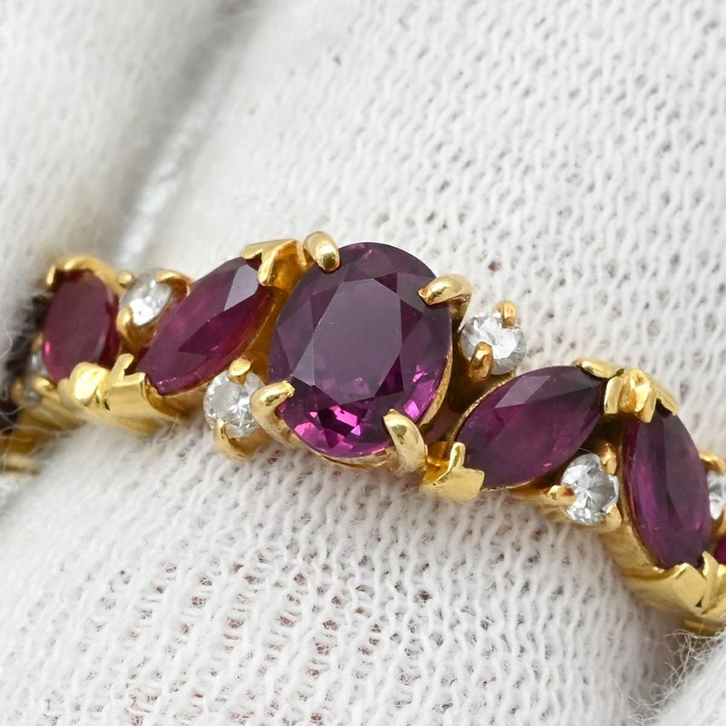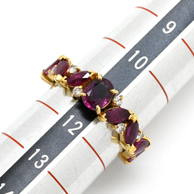 リング 指輪 ルビー ダイヤリング イエローゴールド レッド 赤 オーバルミックスカット 18K 750 YG 11号 【中古】