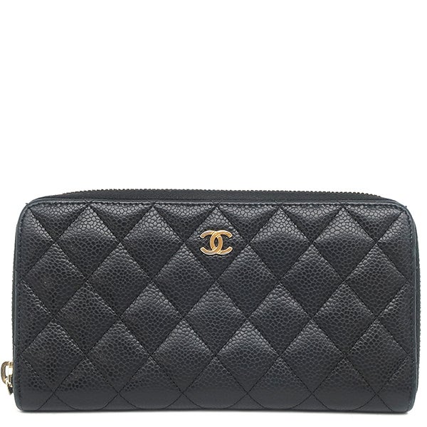 シャネル CHANEL 長財布 マトラッセ ロングジップウォレット レザー キャビアスキン ブラック ゴールド金具 ラウンドファスナー ココマーク A50097 22****** 【中古】
