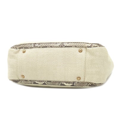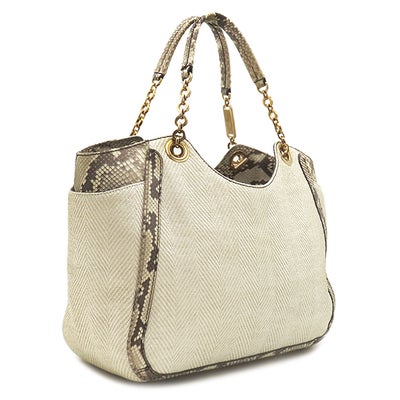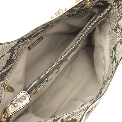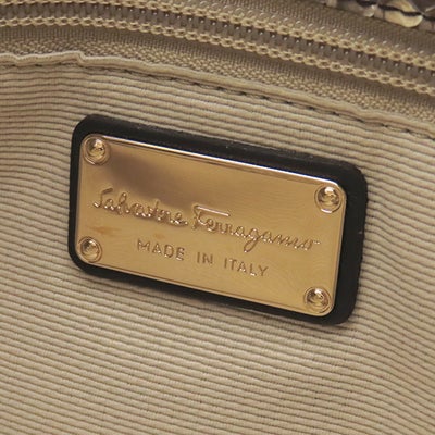 サルヴァトーレ・フェラガモ Salvatore Ferragamo トートバッグ パイソン チェーンショルダー ファブリック パイソン ベージュ ゴールド金具 肩掛け 【中古】