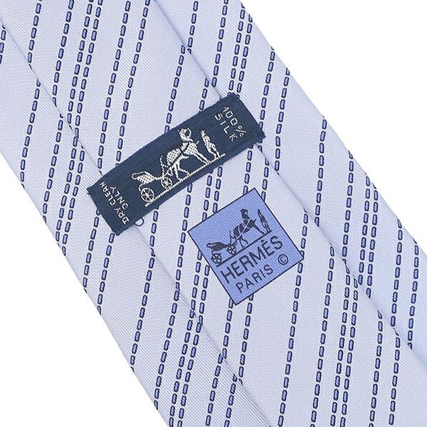 エルメス HERMES ネクタイ シルクタイ 9cm シルク ブルー ストライプ 【箱】 【中古】