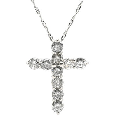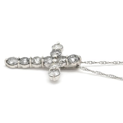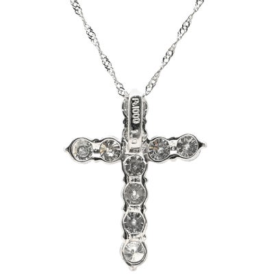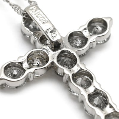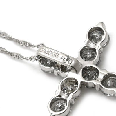 ネックレス ダイヤモンド 1.0ct クロスペンダント プラチナシルバー 十字架 CROSS 10石 10P 10粒 ブリリアントカット 【中古】