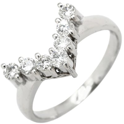 リング 指輪 ダイヤリング プラチナシルバー ダイヤモンド V字 Vライン 15号 【中古】