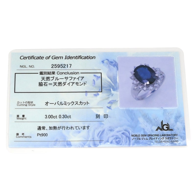 リング 指輪 ブルーサファイア 3.00ct ダイヤ ブルー×プラチナシルバー 青 Pt900 プラチナ オーバルミックスカット 6.5号 【中古】