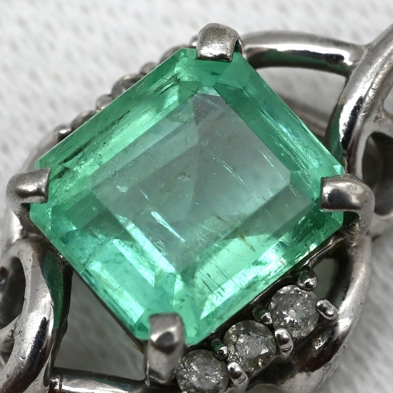 ペンダントトップ エメラルド 1.5ct ダイヤ 0.1ct グリーン×プラチナシルバー 緑 ネックレストップ エメラルドカット スクエア Pt900 【中古】