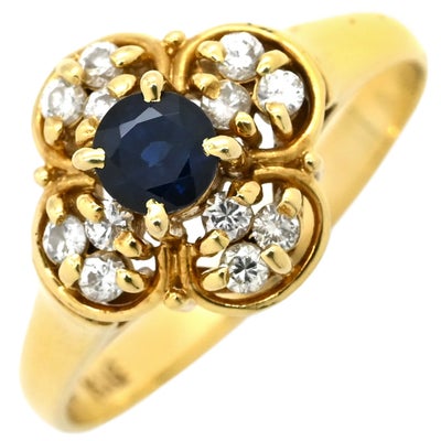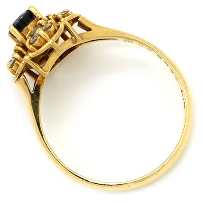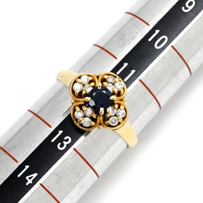 リング 指輪 ブルーサファイア ダイヤ リング ブルー×イエローゴールド 18K 750 YG ダイヤモンド フラワーモチーフ 12号 【中古】