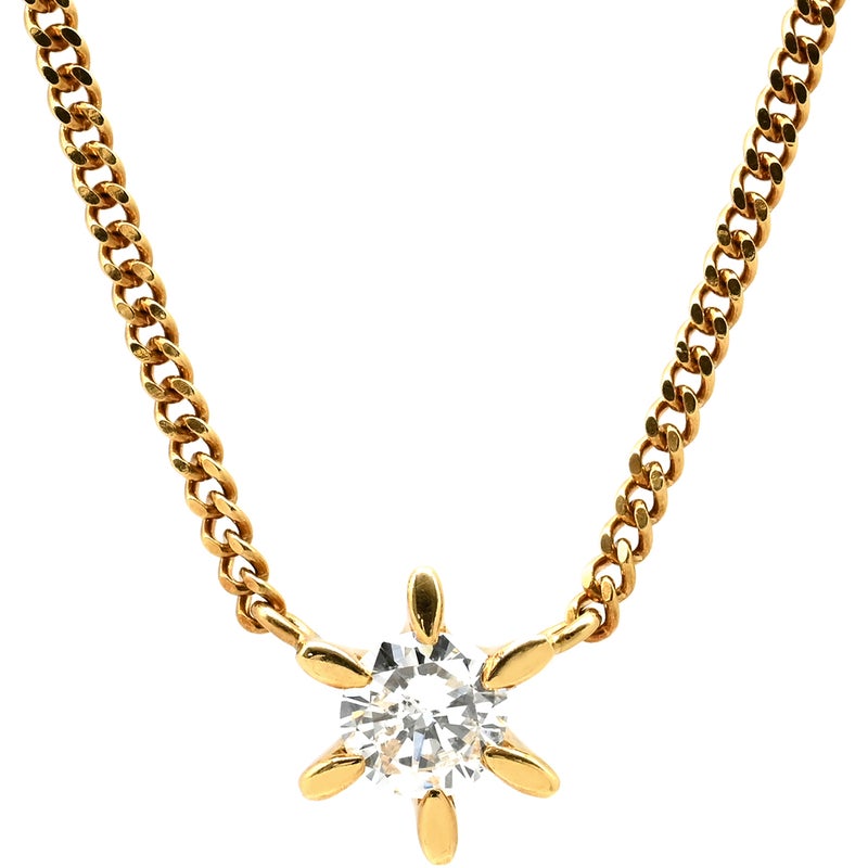 ネックレス ダイヤモンド 0.31ct イエローゴールド Au750 18K 18金 1P 1石 1粒 ソリティア 6本爪 プリンセスサイズ 【中古】