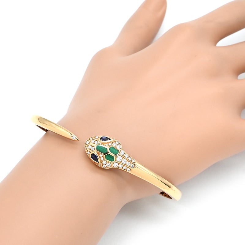 ブルガリ BVLGARI ブレスレット セルペンティ セドゥットーリ ピンクゴールド L 18K PG バングル サファイア ダイヤ マラカイト 356204 【保存袋】 【中古】