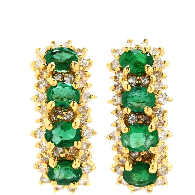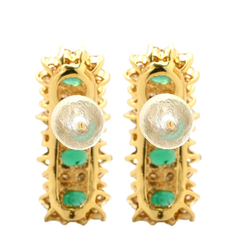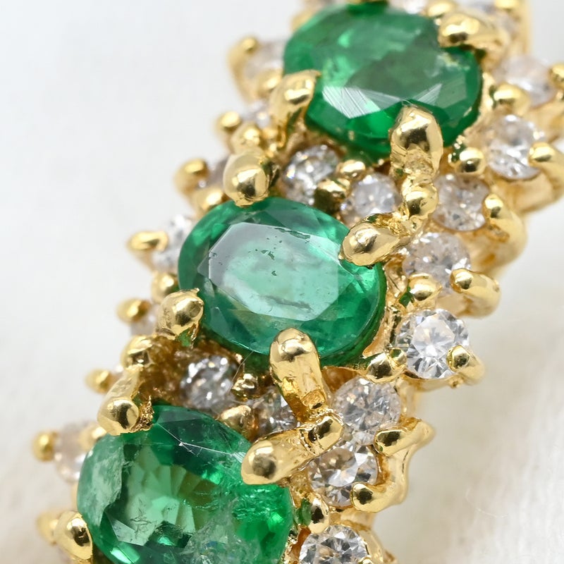 ピアス エメラルド4石 ダイヤ イエローゴールド×グリーン 緑 Au750 K18 オーバル 縦並び アンティーク調 【中古】