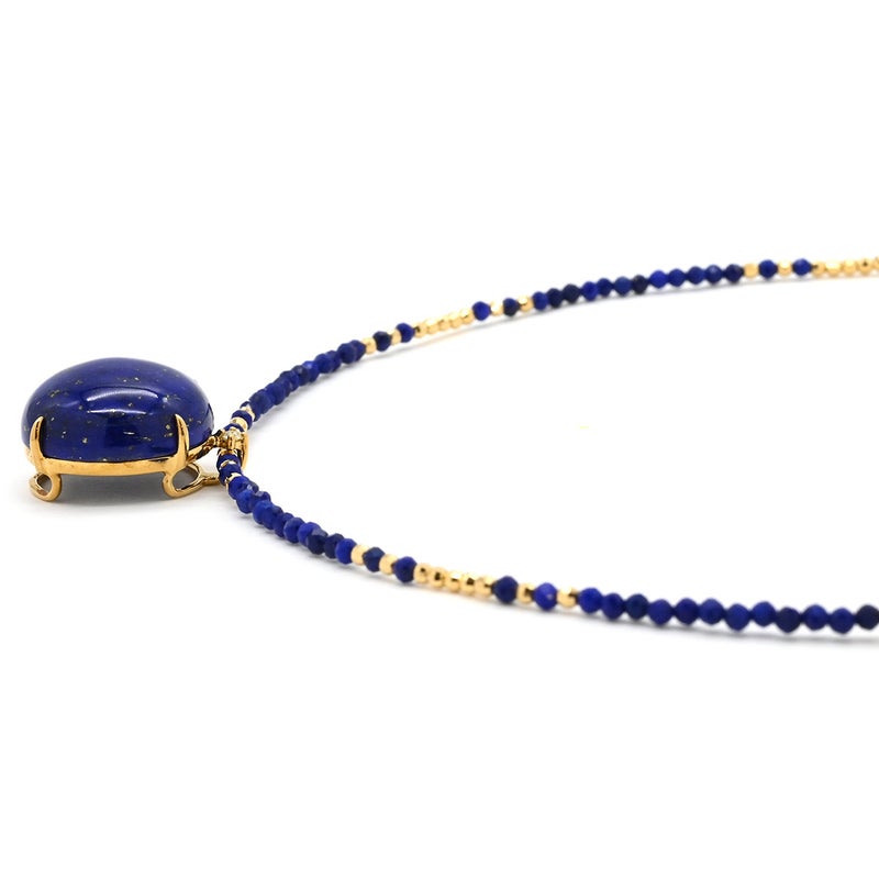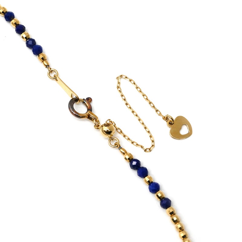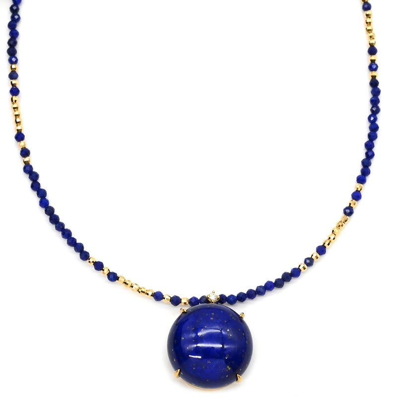 ネックレス ラピスラズリ センター 大玉 イエローゴールド×ブルー Au750 18K 18金 ダイヤ 1粒 ラピスラズリ ビーズ ネックレス 【中古】