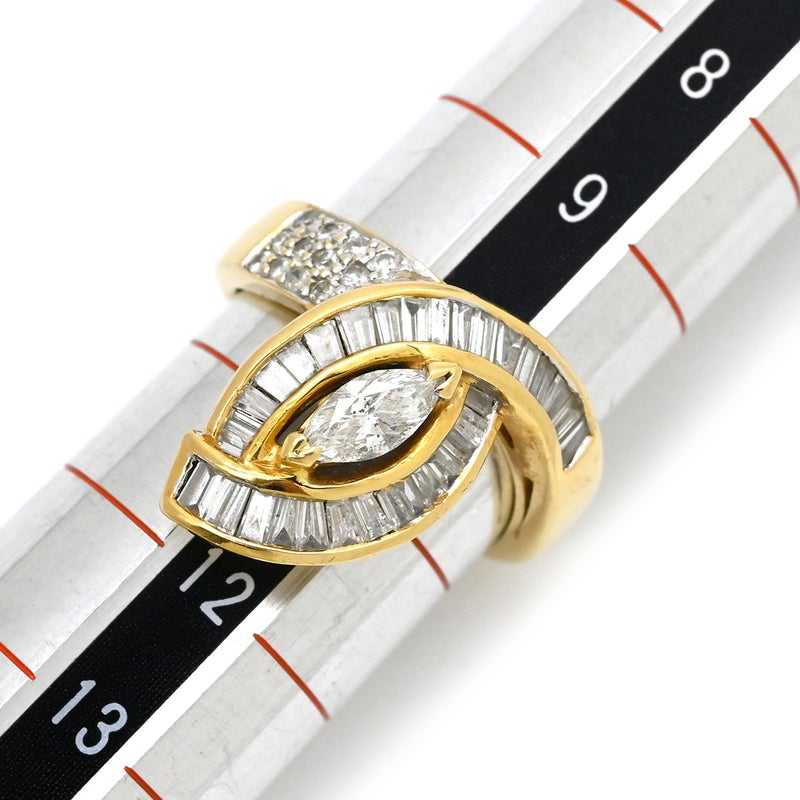 リング 指輪 ダイヤモンド 0.88ct 032ct イエローゴールド K18 Au750 YG デザインリング マーキスカット テーパー 10号 【中古】