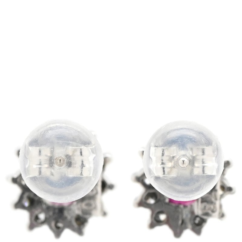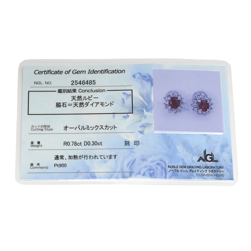 ピアス ルビー ダイヤ プラチナシルバー×レッド 赤 Pt900 オーバル フラワーモチーフ 花 0.30ct 両耳 【中古】
